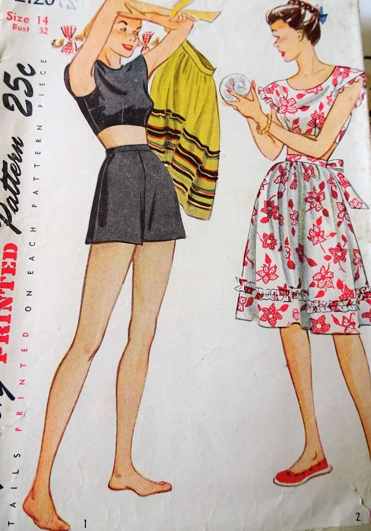 I sewed this ribbon skirt from a swath of black piqué tencel, with chartreuse and vintage ribbons along the bottom. It was loosely inspired by the 1940s sketch below. I’ve always loved the vintage look of ribbon skirts—the tones of this one feel southwest to me, and I wanted to snap it amongst the cacti. But I have my eye on a beautiful Austrian ribbon skirt by Lena Hoschek someday as well.